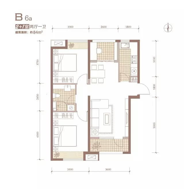 B 6a 2+1室两厅一卫